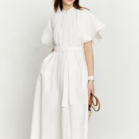 王道の白ワンピース。シンプルなので着回しも可能ですし、1枚で満足できるアイテムです。トーンが明るく、顔全体明るく見せてくれるので、清楚感も出て第一印象は間違い...