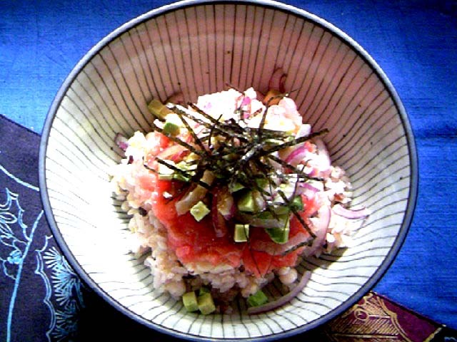 - アボカドとネギ類を食べやすく切って、ミックスしておきます。