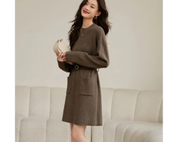 ベージュ寄りの優しいカーキ色がエレガントに仕上げてくれるワンピース。ベルトが高めの位置についているため自然にスタイルアップが叶う1枚。広がりすぎないAラインワンピースで着るだけで上品な印象に!