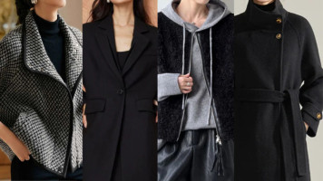 ベージュと言ってもその色味は多種。こちらはぐっと濃いめのベージュでややフォーマル感のある印象に。ウエストは大きめのタックでシェイブしメリハリの効いたデザインになっています。ロングブーツと合わせて大人のクールコーデに。