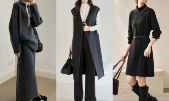 最後は、ラウンドネックにV字カットが施されたTシャツをご紹介。シンプルながらも女性らしいラインを引き立て、軽やかさを出します。きれいめからカジュアルまで毎日着られる黒Tシャツは、ボディラインを引き締めて見せてくれます。甘めのスカートを合わせても大人っぽくまとまりますよ。