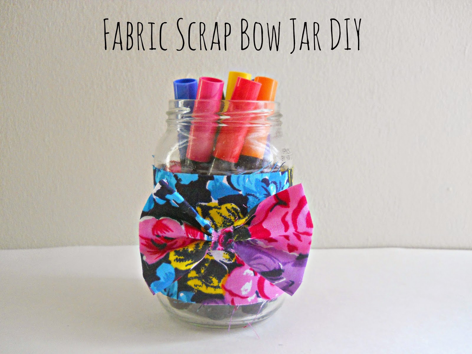 空き瓶に、余り布で作ったリボンを巻きつけてグルーガンで留めています。