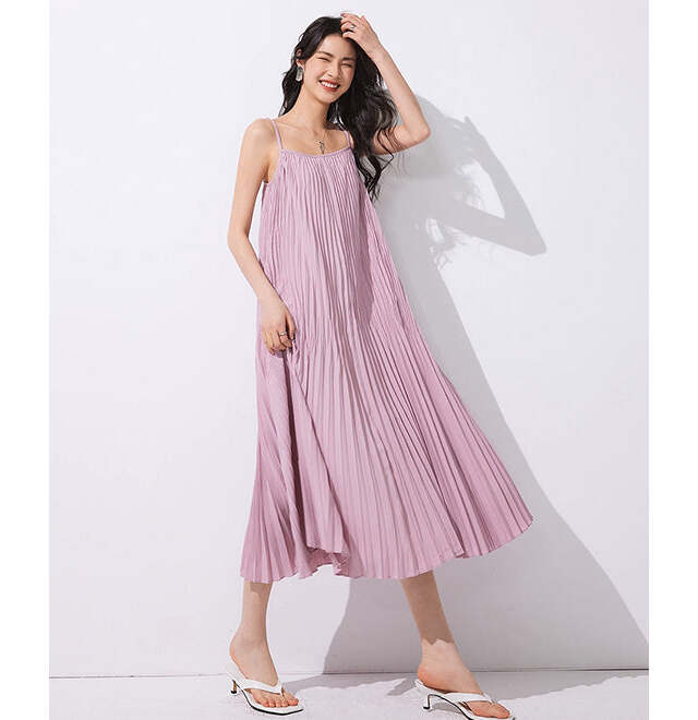 ガーリー好みさんは、可愛すぎない絶妙なトーンのピンクワンピをチョイスしてみて。細やかなプリーツが立体感を生み、上品さを演出!肌見せを控えたいときは白Tをインナーに、足元はハイトップスニーカーで。上品ワンピとのギャップが今っぽいバランスに。