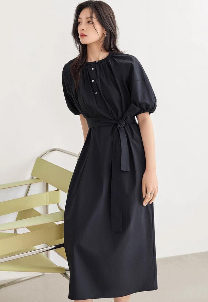 シンプル派さんにおすすめなのが、ラウンドネックシャツワンピ。二の腕をさりげなくカバーしてくれるスリーブと、予定や気分に合わせて2wayに着こなせるのが嬉しいポイント。