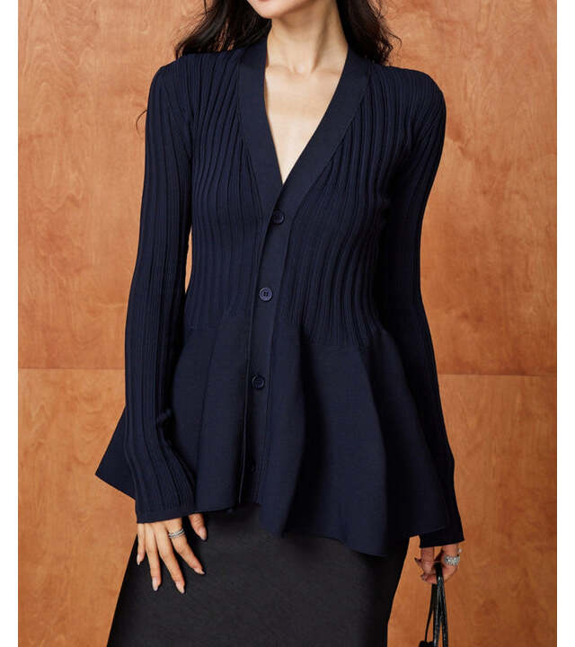 体型カバーと女性らしさを両立するペプラムカーディガン