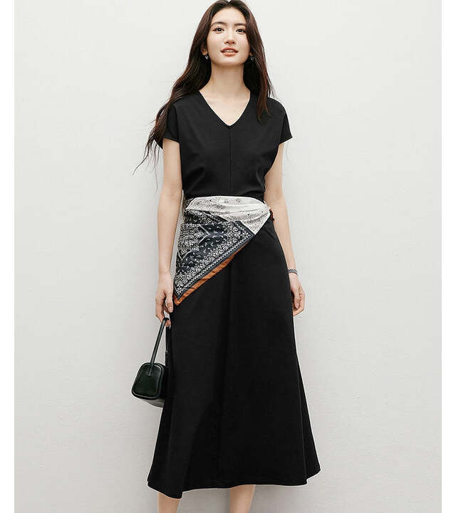 ネクタイ代わりに首元で結んだり、カバンの取っ手に付けてみたり。スカーフをアレンジするのはもはや定番となっていますが、今季はより大胆な使い方をするのがトレンドに。スカーフの柄をしっかりと活かせるシンプルなワンピースがあれば便利ですね。