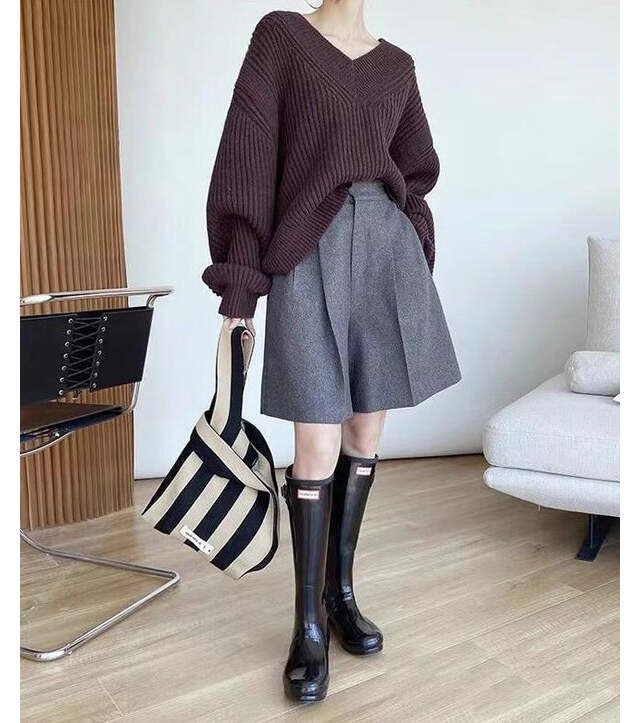 ショートパンツ、と言ってもワイドでフレアーなシルエットが、まるでスカートのような雰囲気です。カジュアルになり過ぎないのが大人にも嬉しい。ハイウエストデザインにセンタープレスも入ってむしろきれいめ?ロングブーツで遊び心を加えるくらいがちょうどいいかも。