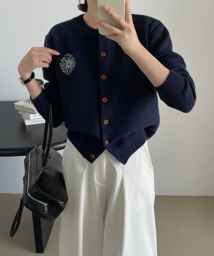 真夏に頼り切ったリネンシャツは、9月からニットカーディガンへシフト!ネイビーなら秋色コーデにすんなり馴染んで、気温調整も楽ちん。