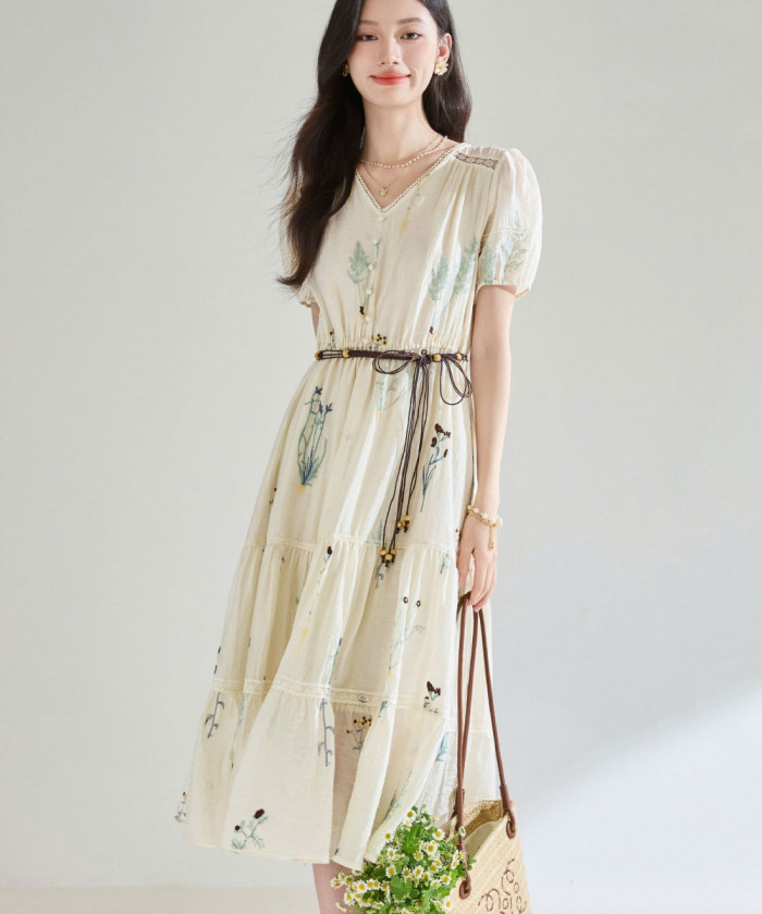 ふんわり広がるシルエットがロマンティックなティアードワンピースは、身に着けた瞬間気分が上がるアイテムです。繊細なボタニカル柄なら、他と差のつく洗練された雰囲気を纏えます。