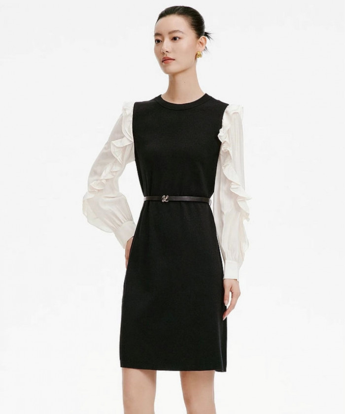 - トレンド感満載!「フリルスリーブ切り替えワンピース」