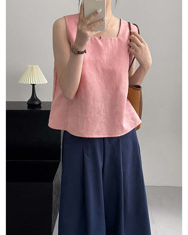 リネン混素材を使用したスクエアベストキャミソールトップスは、夏のお出かけにぴったりの涼しげな一枚。シンプルながらスクエアネックのデザインがデコルテを美しく見せ、大人の抜け感を演出してくれます。アラフィフ世代には、リネンワイドパンツやミディ丈のフレアスカートと合わせることで上品な印象に仕上がりおすすめです。羽織りにシアーシャツを加えれば、日差し対策もしつつトレンド感のある着こなしが完成。ナチュラルな風合いが夏らしさを引き立て、大人の余裕を感じさせるスタイルが楽しめます。