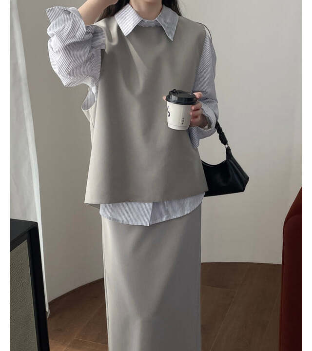 ロング丈で縦ラインを強調。大人シックな洗練グレーベスト
