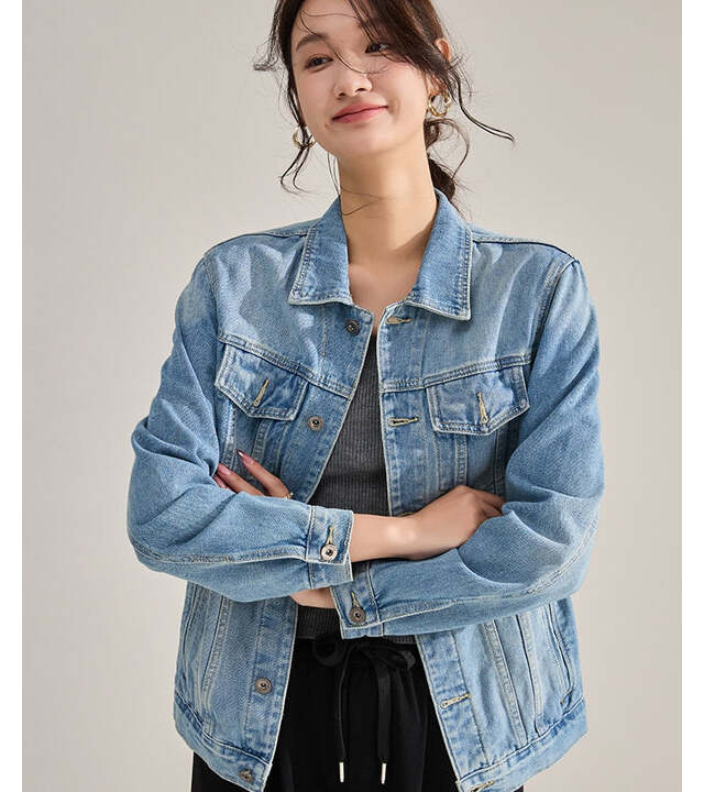 お出かけの予定がまだ先なら、デニムシャツとしても着られるシンプルなジャケットがベスト。ショールを羽織ったりアウターを重ねたり、インナーとしても使えて調整がらくちんです。ウオッシュドデニムの風合いもおしゃれ。ライトな色味が暑い時期にも涼しげです。