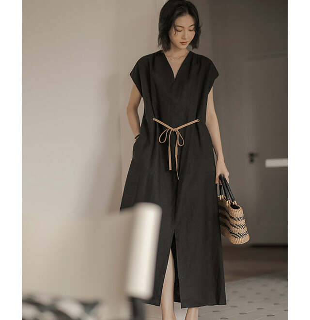涼感と女性らしさを両立する「ストレートルーズウエストリネンワンピース」で叶える夏の大人スタイル
