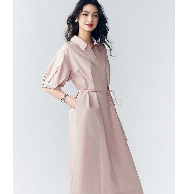 - ペールピンクの優しさとハリ感が魅力「コットンドロップショルダーシャツワンピース」で大人可愛い夏スタイル