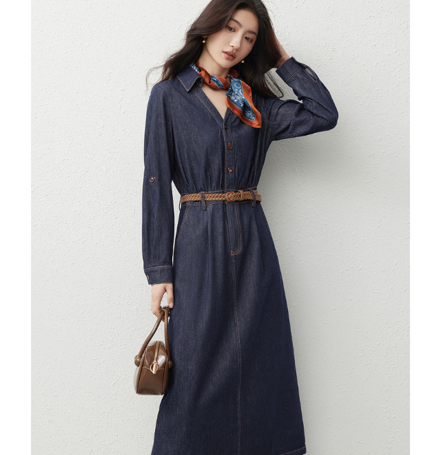 大人カジュアルコーデが叶うデニム素材のロングワンピース。