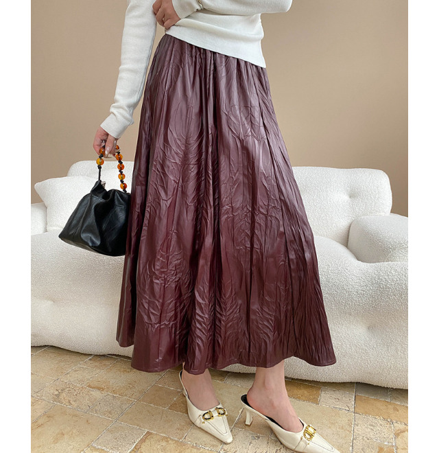 女性らしさを添える「プリーツレザーハイウエストスカート」