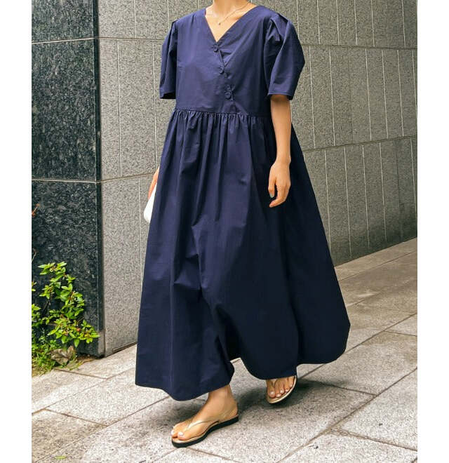 大きく膨らみ全身を覆ってくれて体型カバーをしてくれるのが嬉しいワンピース。切り替え線にたくさん入ったギャザーが女性らしさをプラスしてくれて、生地の中にもメリハリをつけてくれます。デコルテがすっきりと見えるVネックなので、ビッグシルエットでも抜け感を作ることができるのです。