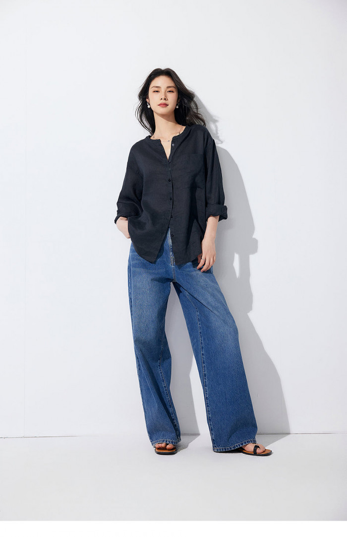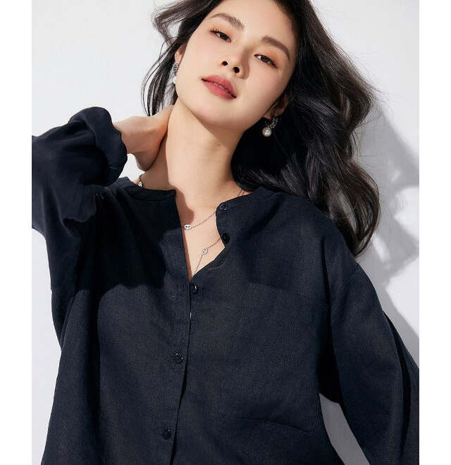 ナチュラルな質感が魅力のリネンシャツは、ラウンドネックがやわらかく顔まわりを演出。濃紺カラーが肌を明るく見せ、季節の変わり目にも心地よい着心地を提供します。きちんと感とリラックス感を兼ね備えた、頼れる大人の一枚です。