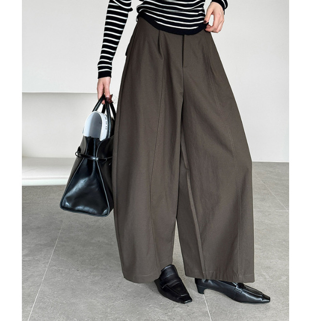 脚やお尻のラインを拾いにくいワイドパンツは、キレイめデザインを選んで。カジュアルなイメージも払拭されて、大人っぽいコーデに。ハイウエストで足長効果もあり、どんなトップスとでも相性が良いので、つい手に取ってしまいそう。