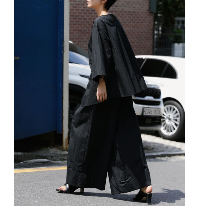 軽くワッシャー加工したシワ感あるこなれた生地で、ナチュラル系にもモード系にもコーディネート可能です。
