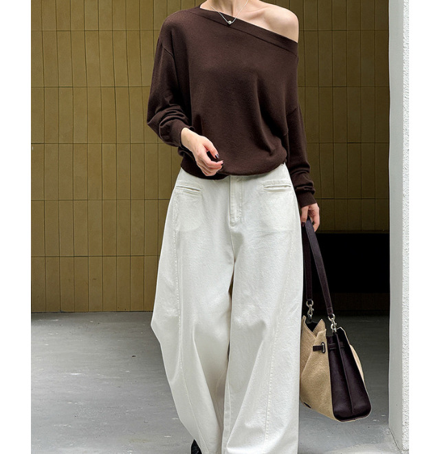 シンプルだけれど、 大人っぽさがぎゅっと詰まったニットトップス。 オフショルダーになっているので、 抜け感はもちろん華奢見えまで叶えてくれちゃいます。 ちょっぴり個性をプラスしたいときはワンショルダーにするのがおすす め!