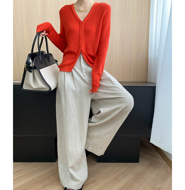 オレンジ味のあるレッドカラーがコーデをパッと明るくしてくれる