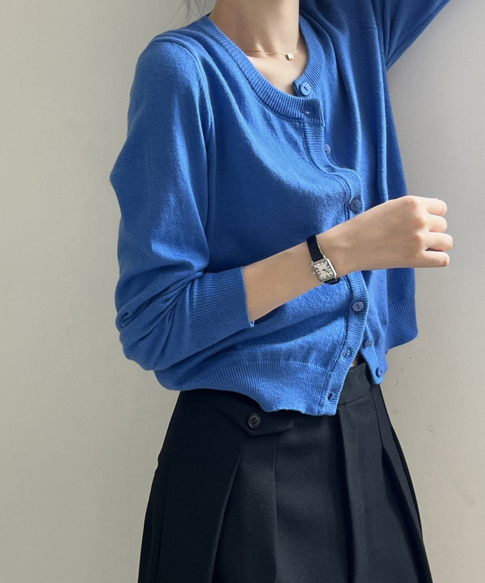 上品な雰囲気が漂う、大人のためのカラーカーディガン。 カラーアイテムはカジュアルになりがちですが、 深みのあるこっくりとしたブルーが落ち着いた印象をプラス。 キレイめなコーデのお供にもぴったりです。 季節を選ばないカラーなので、 ロングシーズンで楽しめるのも嬉しいポイント!