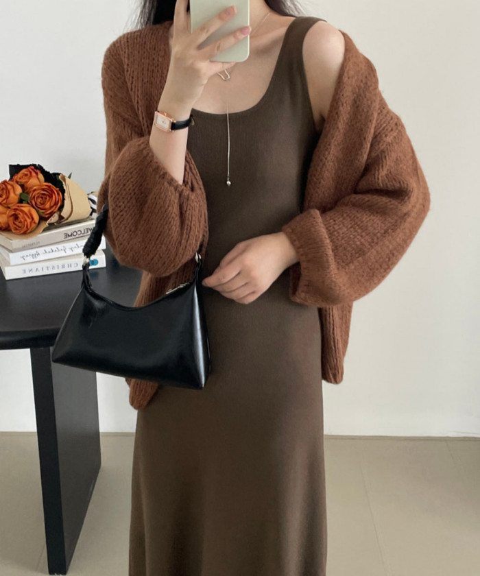 ざっくりと編まれたローゲージニットは、羽織るだけでこなれ感を演出してくれるアイテム。ブラウンの温もりある色合いがやわらかさをプラスし、休日のリラックスコーデやカジュアルな街歩きにもぴったりです。パンツにもスカートにも合わせやすく、着回し力抜群の一着。