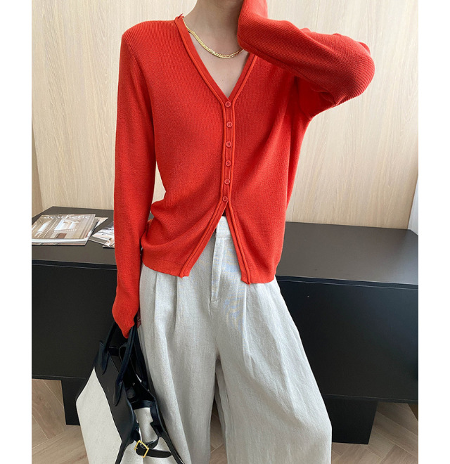 至って普通なカーディガンは、 鮮やかな色味で更新してみてはいかが?
