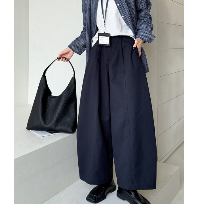深めのタックと裾のテーパードで作るコクーンシルエットがおしゃれです。
