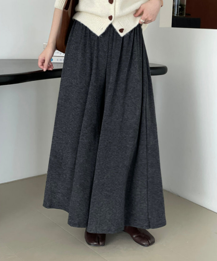 柔らかなニット素材が心地良いワイドパンツ。スカートライクに着こなせます。