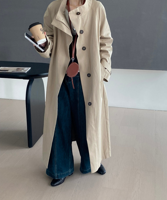 丈が長いだけでなく、前立てやボタンの間隔、ポケットなど全体的に大きめに造られ雰囲気たっぷりのコート。ラフなサイズ感を活かしたカジュアルスタイルも素敵ですが、きちんとめのコーデを着崩すのもおしゃれ。古着っぽくストリート風に着てみたり、意外と着回せます。