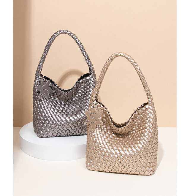 ゴールドやシルバーのバッグは、どんなカラーとも馴染みやすくておしゃれな印象になるから、一つ持っているととても便利。