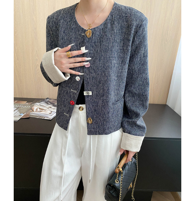 ランダムボタンが華やかなショートジャケット