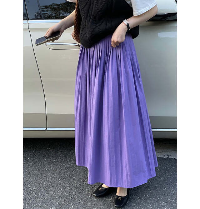 定番プリーツスカートは鮮やかカラーが今っぽい
