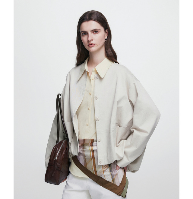 季節の変わり目に大活躍してくれる、ノーカラーのライトなアウター。