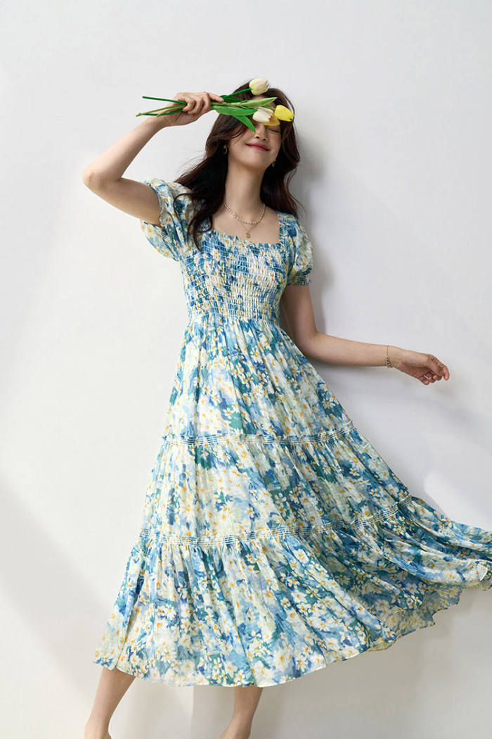 レトロな作りがたまらないこちらのアイテム。気になる腕や脚を隠しながら、ふんわりとしたスカートラインが軽やかさを演出してくれます。たっぷりの花柄に包まれれば、気分はまさにプリンセス。