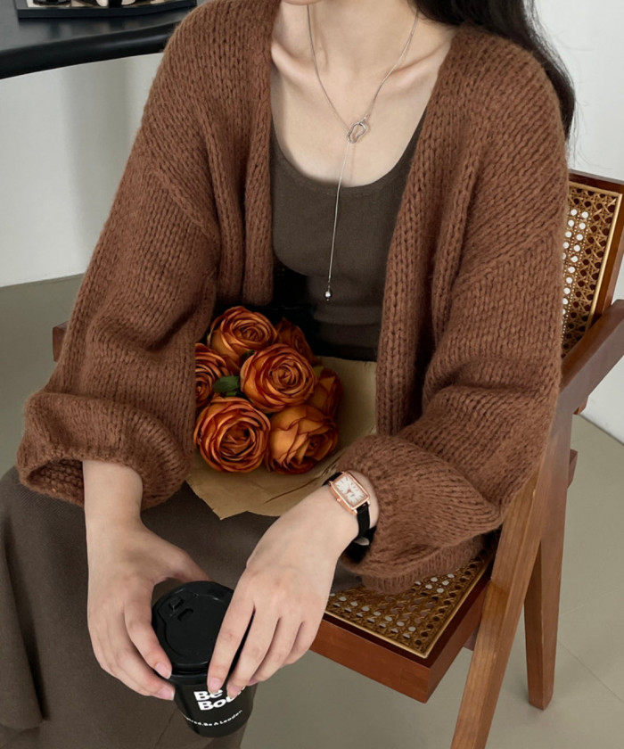 季節の変わり目に持っておきたいカーディガン。この時期はざっくり編まれたローゲージが気になりますよね。程よいボリューム感と温かみのあるブラウンが可愛いこちらのカーディガンは、思わず毎日手に取りたくなるアイテムです。