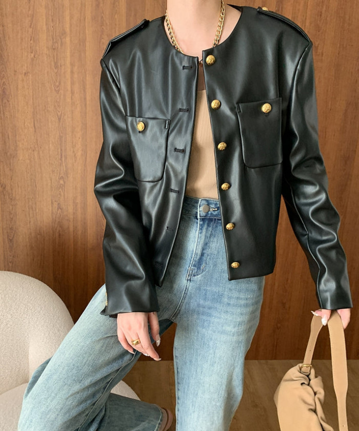 軽やかな着心地と上品な艶感が魅力のエコレザージャケット。ショート丈のデザインは、スタイルアップ効果があり、ワイドパンツやロングスカートとの相性も抜群です。ハードすぎない仕上がりで、日常のコーディネートにも取り入れやすく、洗練された大人カジュアルを叶えます。