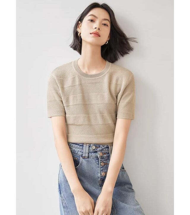 シンプルだから着回し自在「半袖ニットセータートップス」