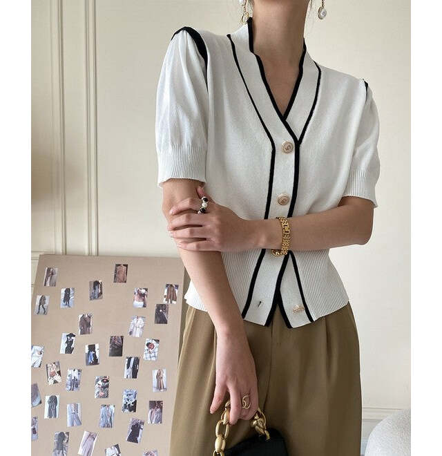 羽織りにもトップスにも「半袖ニットカーディガン」