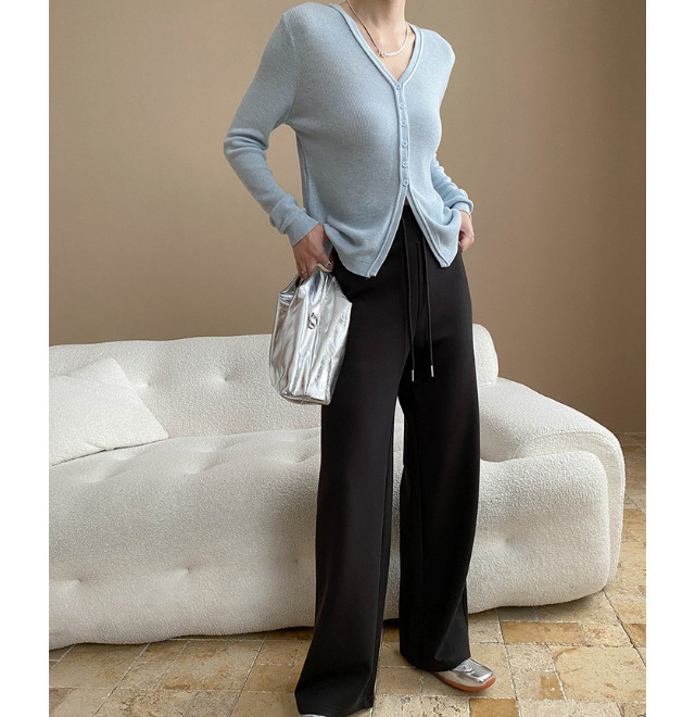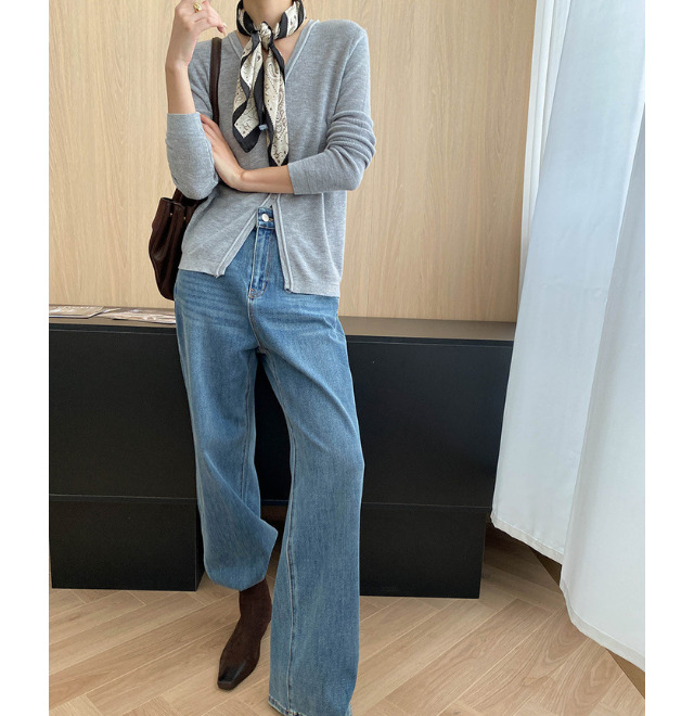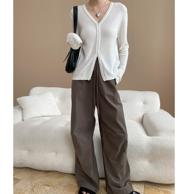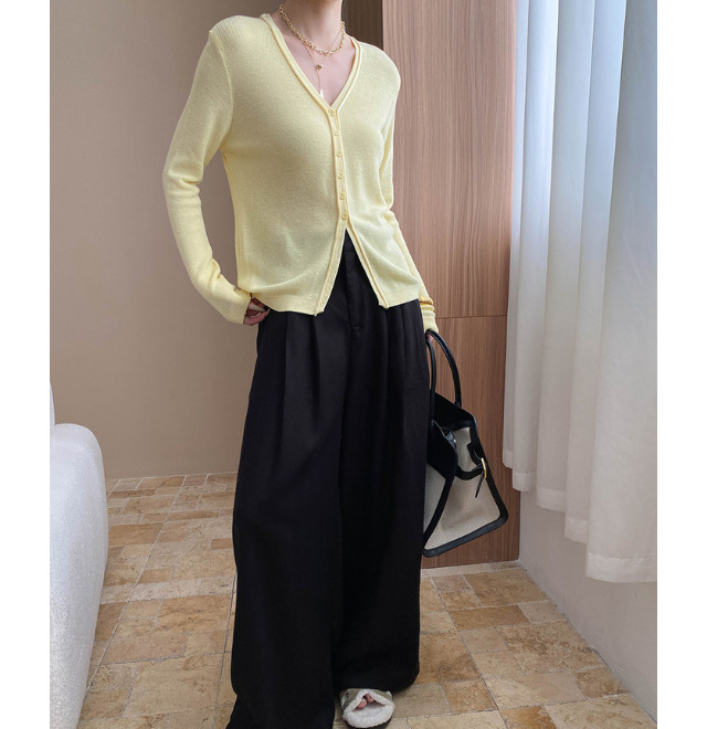 Vネックのリブカーディガンと言えば、ぴたっとした印象かもしれませんが、こちらでご紹介するカーディガンは、見た目も着心地もリラクシーなラクチンカーディガンです。