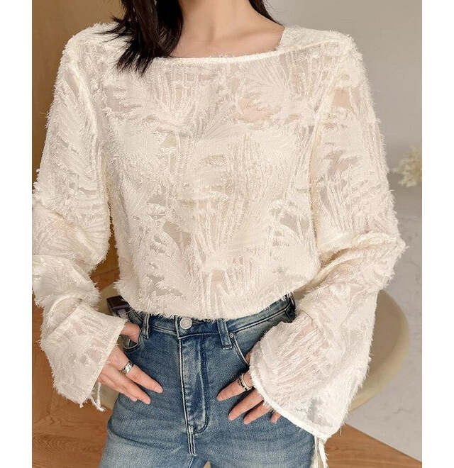ストレートなラインに咲くフラワーモチーフが印象的。光の加減で表情を変える生地感が、さりげなく女らしさを演出してくれます。デニムと合わせても品よくまとまるのが嬉しいポイントです。