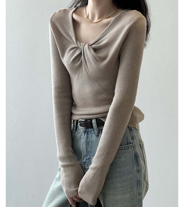 一枚で女性らしさが際立つ立体ドレープのVネックニットです。程よくフィットする柔らかな素材で着心地も抜群。アクセなしでも華やかに仕上がるので、シンプル派さんにもおすすめです。