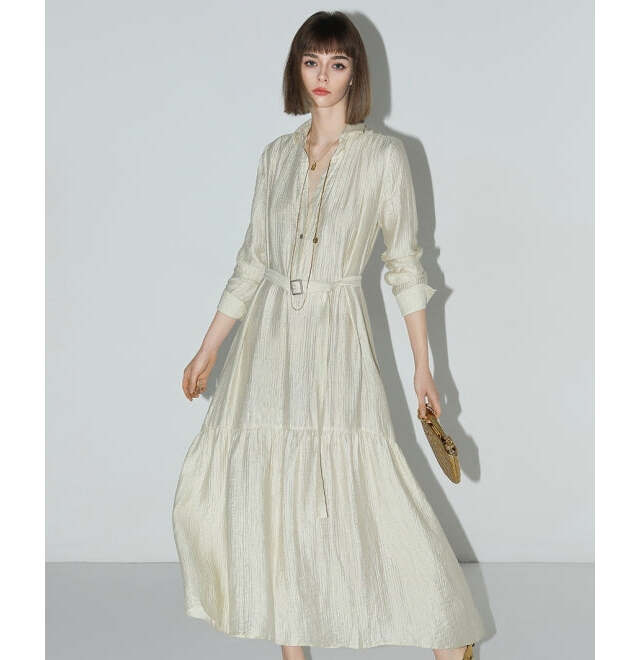 リヨセル素材のナチュラルな落ち感に、ほのかな光沢をプラスした一着。プリーツの動きが華やかさを演出し、日常のワンシーンから特別な場面まで対応可能。シンプルながらも表情豊かで、大人の透明感を感じさせるアイテムです。