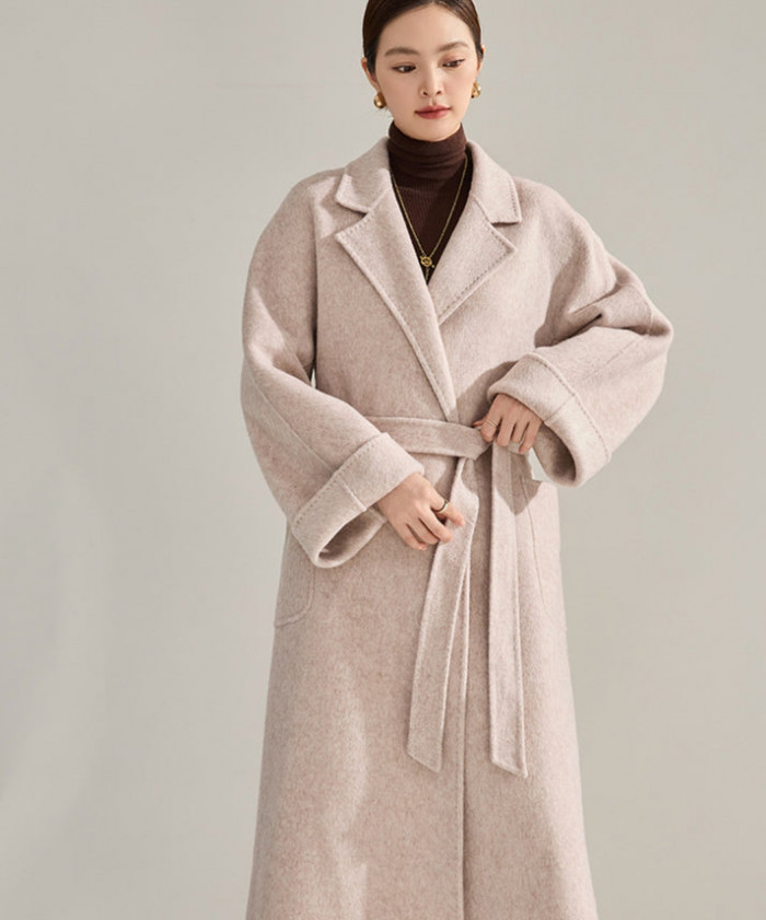 たっぷりの分量感が大人の余裕を感じさせるクラシックコート。オーバーサイズのトップスも包み込んでくれます。滑らかな手触りのウールにラペルと袖口に効かせたステッチが上質さをプラス。ガウンスタイルなので、ベルトの締め方によってシルエットの調整ができるのも嬉しいポイント。