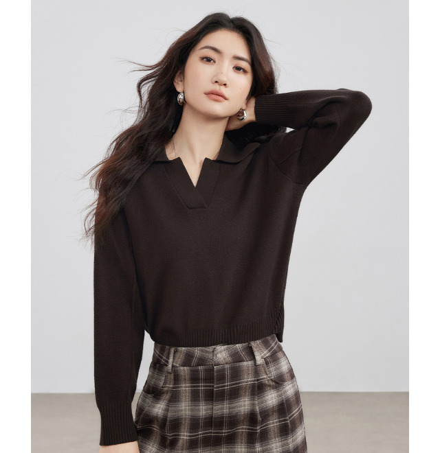 すっきりした首元が印象的なニット。重くなりがちなニットコーデを軽やかに見せてくれます。襟付きデザインできちんと感がありつつ、ゆったりシルエットでカジュアルにも着こなせます。パンツにもスカートにも合わせやすく、幅広いコーディネートを楽しめる一枚です。
