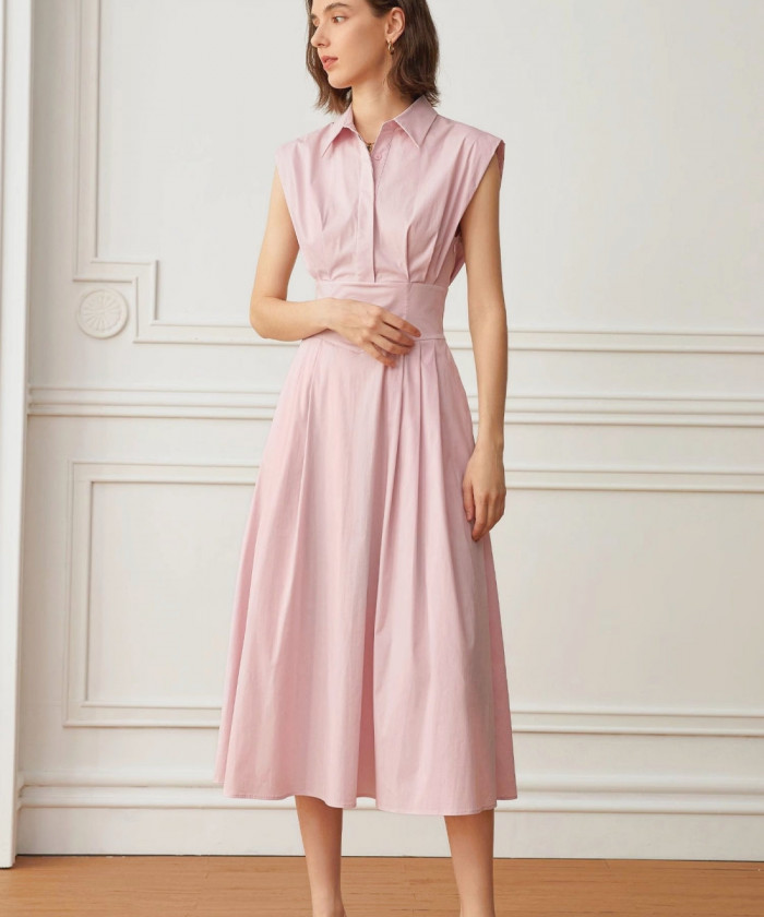 シャツデザインにタックが加わり、シルエットを上品に整えるフレアワンピース。やわらかなピンクカラーは甘さを抑えつつ、秋冬のコーデにフェミニンなアクセントをプラス。オンオフ問わず着回しやすい万能さが魅力です。