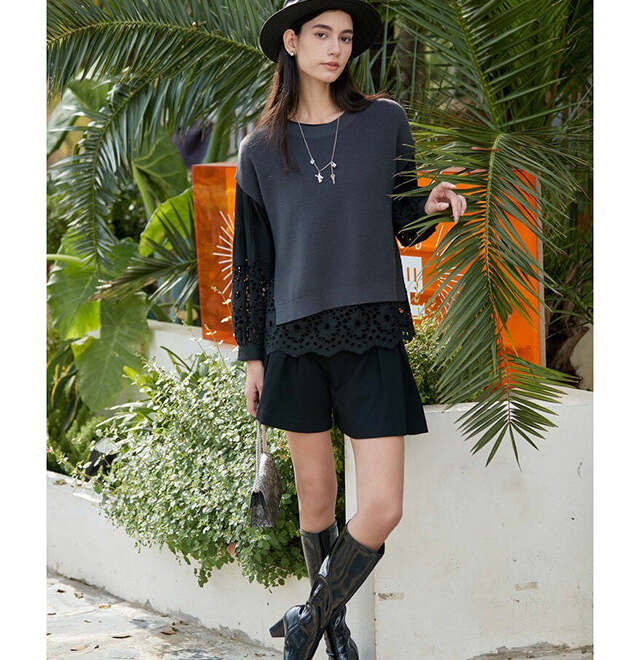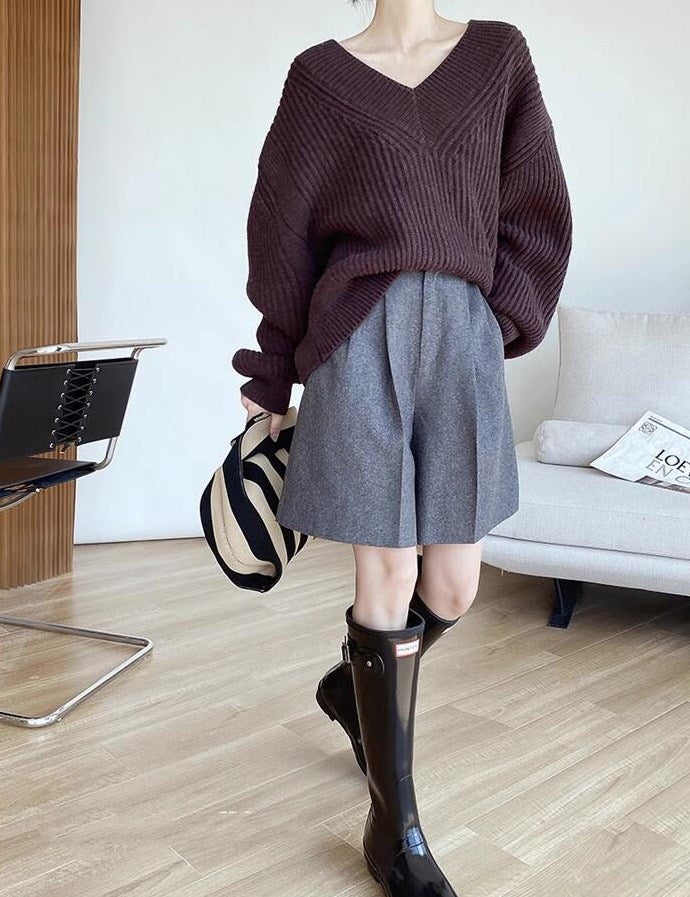 ハイウエストのショートパンツは、ロングブーツと合わせることで脚長効果を最大限に発揮。トップスはシンプルなニットやジャケットを選んで、洗練された印象をキープするのがおすすめです。大人がショートパンツを取り入れる際は、落ち着いた色味を意識すると品良くまとまります。